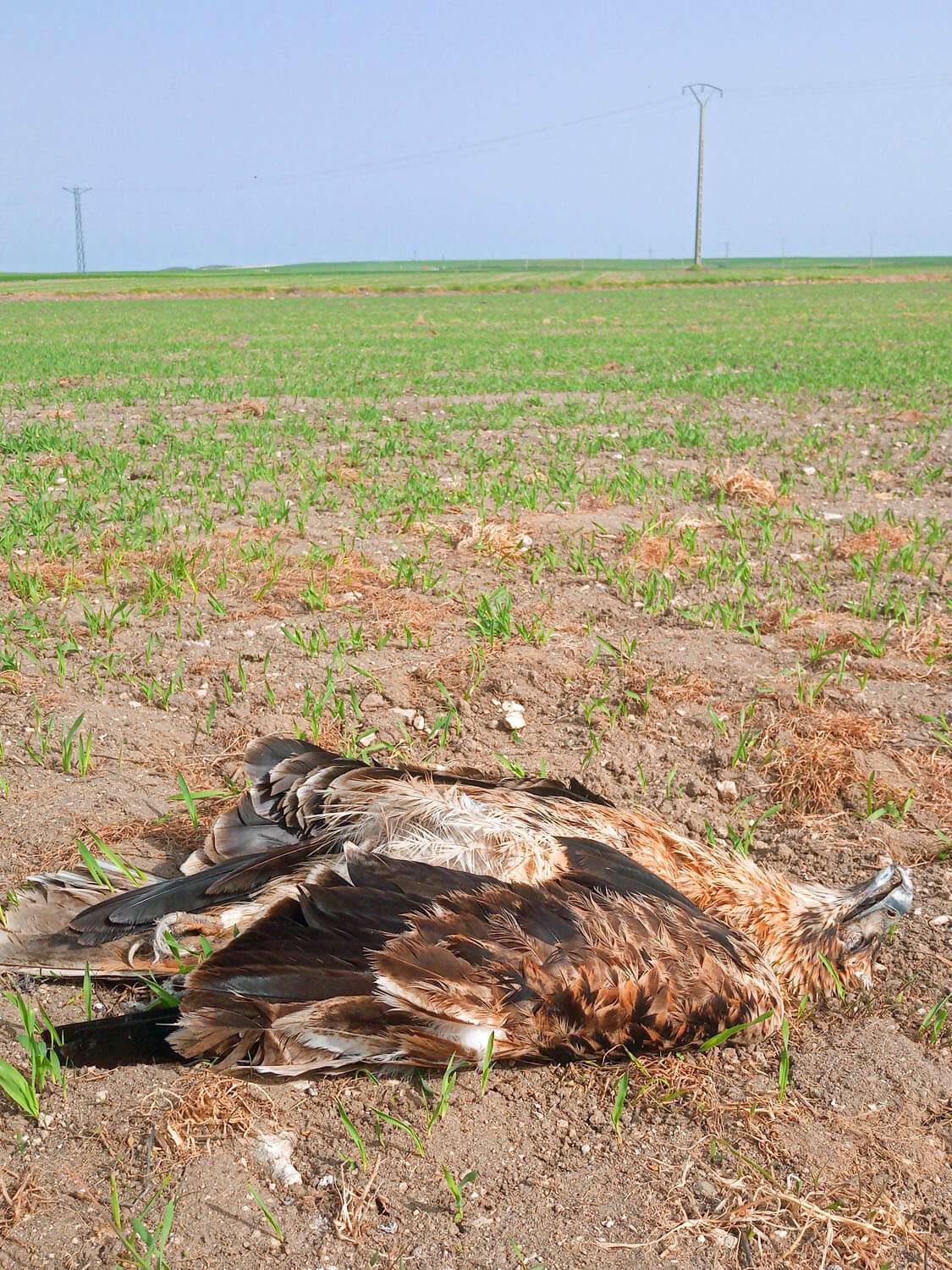 En lo que va de año, se han encontrado 5 ejemplares muertos por electrocución de esta especie en peligro de extinción en la Comarca de la Campiña Segoviana, evidenciando la grave amenaza que representan estas infraestructuras.